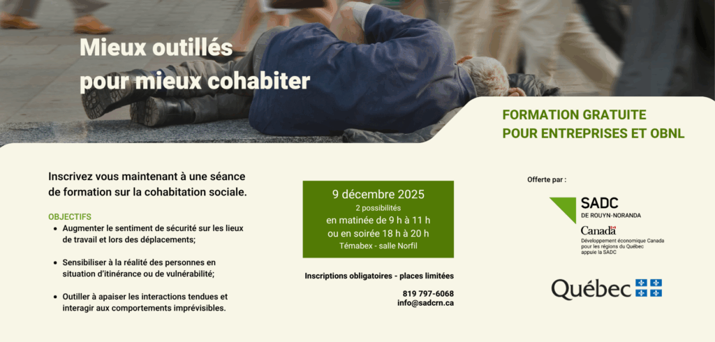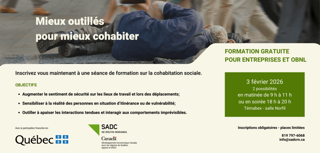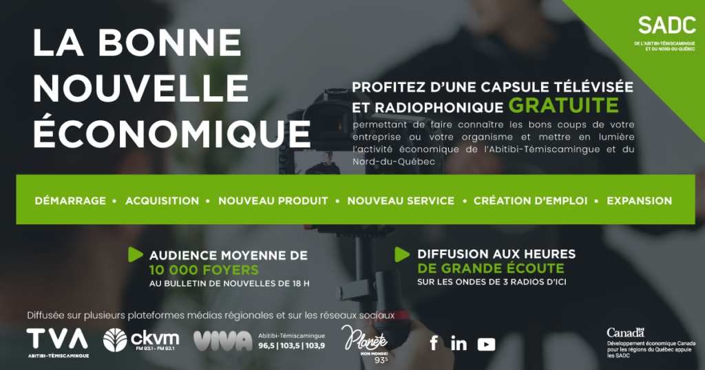 La SADC développe une vision d’avenir de la collectivité par des activités qui favorisent la concertation et le partenariat. Grâce à ses interventions et à son fonds d’investissement, la SADC de Rouyn-Noranda souhaite être reconnue comme un incontournable pour les entrepreneurs en démarrage et en croissance ainsi que pour les projets de développement économique émergents dans la collectivité.